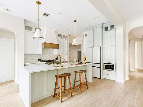 This one-of-a-kind 1.5-story residence in prestigious Eagle Springs exemplifies refined elegance & modern sophistication. Meticulously remodeled w/ over $270K in designer updates, the home showcases custom lighting, premium finishes, & thoughtful attention to detail. Four bedrooms & three full bathrooms grace the main level, complemented by a private home office & formal dining room. Upstairs, a spacious game room & media room (or 5th bedroom) w/ an additional full bath offer versatile living spaces. The gourmet kitchen dazzles w/ a waterfall quartz island, farmhouse sink, marble backsplash, & bespoke cabinetry, seamlessly connecting to an open living area that flows to a screened, covered patio & sparkling pool. Situated on a quiet cul-de-sac w/ a 3-car garage, this home offers luxurious living at every turn. Enjoy Eagle Springs’ resort-style amenities, including pools, parks, sports fields, ponds, trails, & top-rated schools—all just minutes from shopping, dining, & IAH/59/8 access.