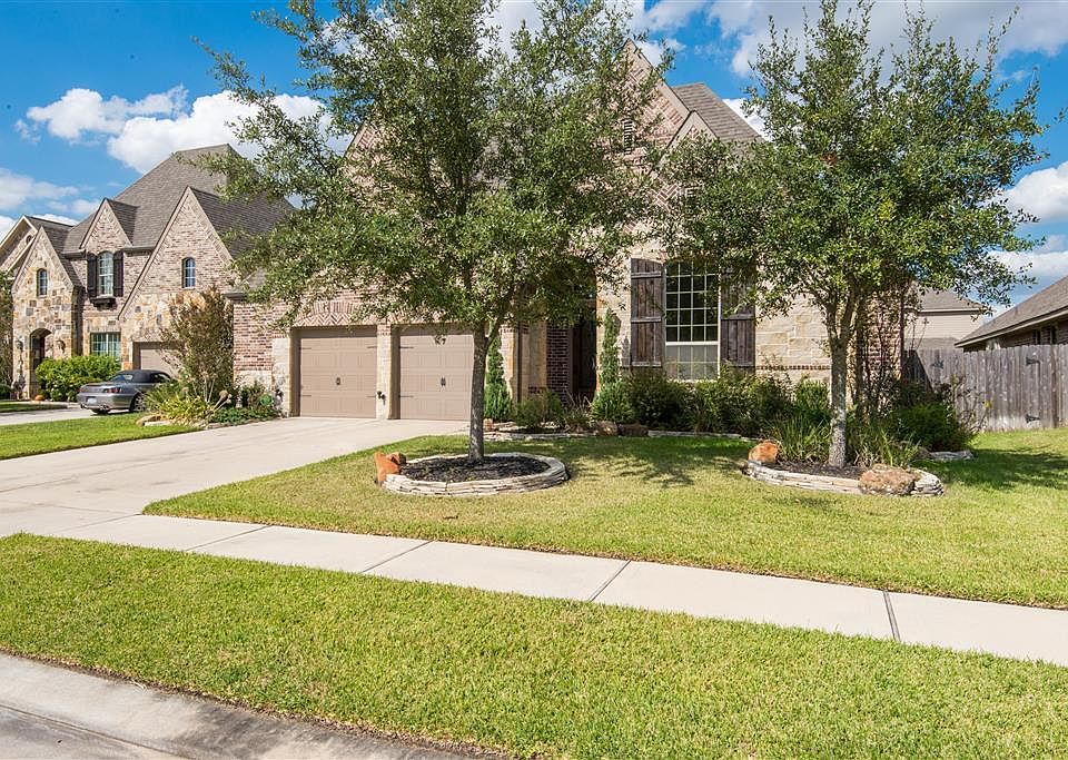 This home has a beautiful arched entryway, granite countertops in kitchen and master, and lush landscaping in the front and backyard. Features include hardwood floors, carpet in bedrooms, study with double French doors, master bath with separate sinks, and two bedrooms with a Jack-and-Jill-style bathroom. Kitchen boasts stainless steel appliances with fridge included. Home also has a grand stone fireplace and full sprinkler system. Call today for an appointment!