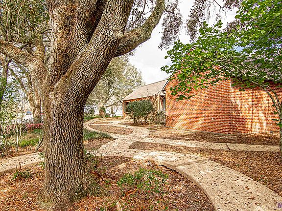 ORIGINAL HAYS TOWN QUALITY CONSTRUCTION with arched doorway openings and old cypress ceiling beams. This 4BR/2BA sits on .54 acre corner lot in the gated CCLA community off Highland Road. As one enters the large foyer, attention is given to the recently refinished beautiful tongue and groove pine and Old New Orleans soft red brick flooring. Formal dining room has ample room for large table & buffet. LR has marble FP with bookcases and cabinets on each side. Kitchen features electric cooktop, copper exhaust hood, island, walk-in pantry, honey colored cypress cabinets, cypress beams and triple sink. Oversized sunroom/loggia has window wall overlooking rear courtyard, cypress beams and stairs to attic which only serves as storage. Large master bedroom ensuite has 2 walk-in closets, abundance of cabinets & drawers with jetted tub and toilet in separate small room. One bedroom can serve as office while the 2 other bedrooms share a Jack and Jill bath. Privately enclosed rear courtyard with flagstone and brick lined flower beds. Koi pond with elaborate statue between home and garage. Whole house generator. Security system. Central vacuum system. New roof 2021. Double rear garage. Covered breezeway from garage to home. Brick and stucco exterior. Copper gutters. Landscaping includes mature oak, pine and magnolia trees, azaleas, camellias, Near East light pink flowered crepe myrtle trees, daffodil and snowdrop bulbs which bloom yearly.