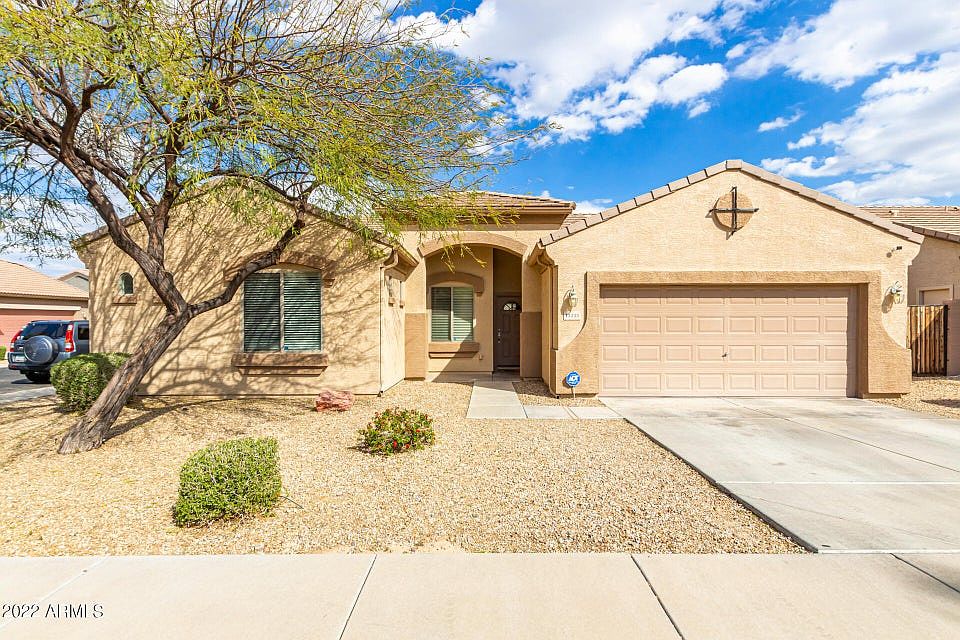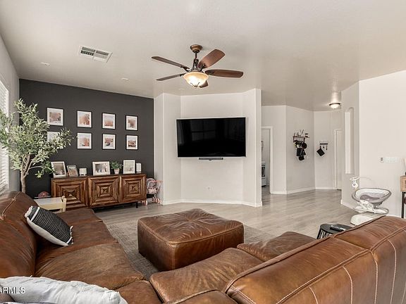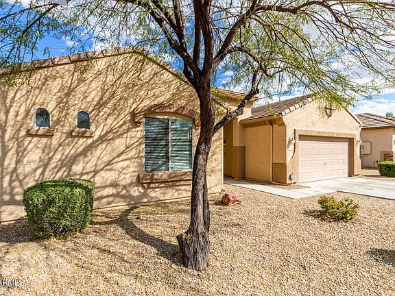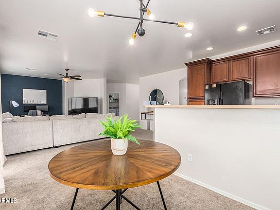 Welcome to your new home in the highly sought after quiet and gated community of Suraya Park in Peoria! This move-in ready single-family residence is situated on a desirable corner lot and offers a perfect blend of comfort, style, and convenience. This home offers a spacious layout with open-concept split floor plan features high ceilings and a spacious great room and kitchen area, ideal for entertaining and daily living. 3 bedrooms, 2 bathrooms and a flexible den with double doors offers the perfect space for a home office, playroom, or can easily serve as a fourth bedroom. The eat-in kitchen boasts a breakfast bar, upgraded cabinets with crown molding, solid surface counters, and newer appliances included. The immaculate primary bedroom ensuite is a true retreat, featuring dual sinks and a separate shower and tub. All bedrooms include walk-in closets for ample storage. Residents have access to a community pool, spa, and a beautifully maintained greenbelt/grass area just steps away!