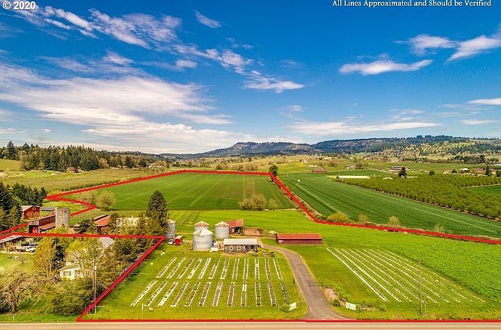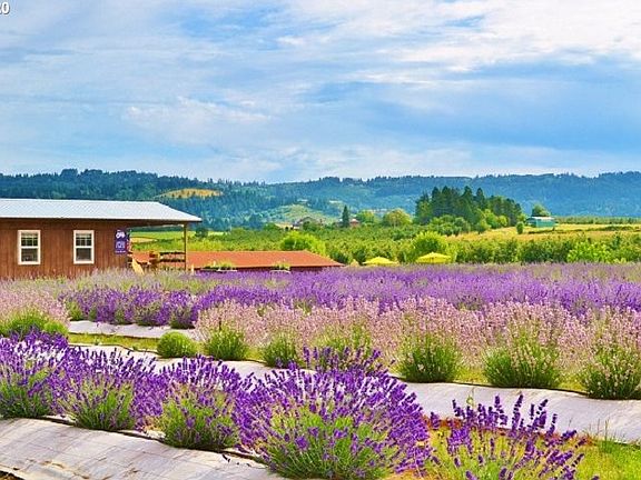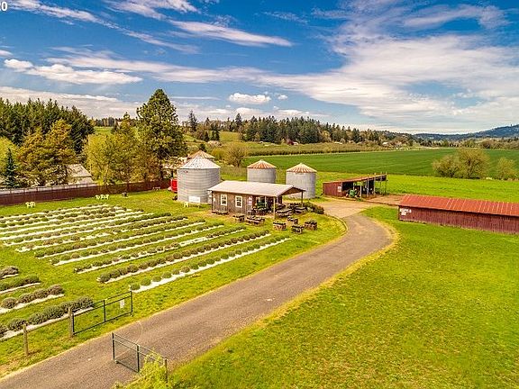 Unprecedented offering of 40+ gorgeous acres! Bring your house plans for your custom country estate to take advantage of the spectacular territorial and wine country views. Septic site already approved and private ~13GPM residential well already drilled and capped. Plentiful agricultural diversification and income opportunities to meet agricultural income requirement for residential building. The level acreage, currently in rye, offers great conditions for farming ventures such as hazelnuts/blueberries, hay, cattle or horses, or to expand the current lavender fields and fig grove. The farm store building offers potential renovation site or agribusiness options while the four large barns provide extensive hay and equipment storage. The property also features metal grain silos with fans and an O2 compost processing facilities. Furthermore, this idyllic acreage is across the street from Ewing Young Elementary School and offers plentiful acres for privacy as well as creek frontage and breathtaking views. Equestrians will appreciate the level, usable acreage and the short, approximate 2 mile commute to an established equine veterinary clinic and local hay/bedding supplier. The central location on the preeminent Ribbon Ridge and Calkins wine tasting route also provides ample opportunities for wine connoisseurs or for agritourism opportunities. This rare, large acreage offering provides so many possibilities and boasts underground power in place, septic site approval, well already drilled and fantastic location with easy access to downtown Newberg and charming rural commuter routes to the Portland Metro. Please contact the Oregon Water Resource Department for questions on previous water rights and irrigation plans. *Adjoining 42 acres parcel with custom residence and extensive equestrian facilities also available* *Farm market business and inventory is not include with sale, though is negotiable* *Please be respectful of operating business, store clerks and customers. All questions should be directed to listing agent.*