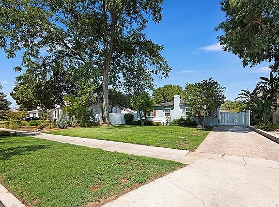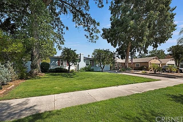 Don't miss the opportunity to own this Old Granada Hills charmer on tree lined street. 1330 sq ft on a nearly 10,000 sq ft lot with ADU potential! Adorable, charming and move in ready! Cute as a button, gleaming hardwood floors and traditional center fireplace, dual paned windows too! Updated expanded kitchen with soaring vaulted ceilings, center island, granite counters and and newer cabinets. This kitchen and living room have a great room feel, very expansive and inviting. 2 bedrooms on one side, and the 3rd bedroom on the opposite side (no closet). Could be a perfect office or even a formal dining room. Interlocking long driveway and rear patio, really special! Towering trees, mature landscaping and lots of room to play. Rear yard has an open patio cover, fully drywalled garage with fresh paint, bonus room and spectacular 1/2 bath. Lots of possibilities here! Master suite has ensuite bathroom, and custom wood siding accent wall. Nicely landscaped rear yard with patio, market lights, walk ways, faux grass, raised planter beds and blooming flowers galore! Award winning Granada Hills Charter school. Walk to food trucks, restaurants, shopping and transportation.