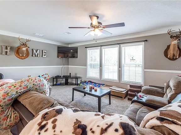 Like New, Built 2019! Well maintained 3bd/2ba double wide LOADED WITH UPGRADES on an 1.04 acres lot with pole barn and shed. Inside this home you have an OPEN FLOORPLAN features a spacious living and dining room with chair railing, crown molding and a column in the foyer. The open concept kitchen showcases a tray ceiling with recessed lighting, stunning white cabinets with crown molding, black appliances, and oversized island with farm sink, and pedestal breakfast bar. The master suite features a double door entry, crown molding, large walk in closet, and luxurious en suite with dual sinks, built-in makeup vanity, oversized garden tub, and a tiled walk in shower. The secondary bedrooms features crown molding, chair rails, and spacious closets. Inside you have a large laundry room with washer and dryer. You have a large parking pad with space for large vehicles including a boat and RV. The fantastic home is nestled on a large lot with more than enough room for pool. This charming home is conveniently located near shopping, dining, local parks, and the Suncoast Parkway, making the commute to Downtown Tampa and Gulf beaches a breeze! This one won't last long.