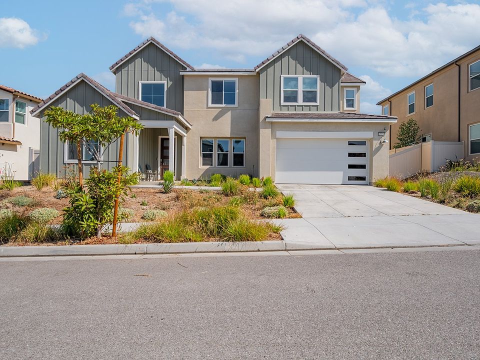 The modern kitchen is a chef's delight, featuring stainless steel appliances, a center island, and a walk-in pantry. The open layout seamlessly connects the kitchen to a family room with a built-in fireplace, creating an ideal space for entertaining. The first floor includes a bedroom and a bathroom, perfect for guests or a home office. On the second level, you'll find a spacious loft that can be used as a bonus room, along with a laundry room, 2 bathrooms, and 2 ensuite bedrooms, including the luxurious primary suite. The primary bedroom offers a roomy walk-in closet and a private bathroom with a double sink vanity, shower, and soaking tub.