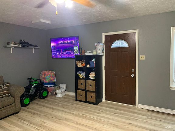 Cute'n cozy! Good-sized living room, kitchen, and main floor laundry room with a bathroom and extra large bedroom. A lot of built-in drawers and shelves in the hallway for extra storage. Basement features a good-sized family room, or could be used as a bedroom (no egress window, but close to the stairway), and Furnace room with Electric forced air furnace. Outside features a 24 x 22 garage with plenty of room for your car and hobbies also! Fenced yard for the pets; covered deck area for those fun barbecues and get-togethers! Fairly close to Schools, Harmon Park, Restaurants, and a Drive-in on Kimberly Road. Metal Shed behind the garage! Also features Alley Access to the back yard!