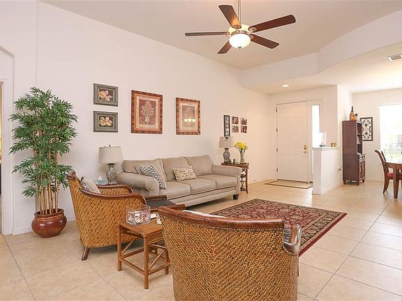 Beautiful 3/2/2 Bristol model. This is presented as a "turnkey" move in ready pearl, nicely furnished so no need to run out shopping. Main living area is tiled, including the large lanai. The kitchen features solid surface counter tops, wood cabinets and lots of room for the chef of the house. This home was built in 2010, complete with gutters and IMPACT GLASS. It is obvious that the owner takes a lot of pride in the home. The outside of the home was just painted, so no worries for the new owner. Kings Gate is a very active 55+ community offering an 18 hole executive golf course, a full service restaurant, large heated pool and spa. You'll find tennis, bocci ball, lawn bowling and more outside. Inside you'll find a ballroom, computer room, theater, billiards and a variety of card games. A full time activities director will keep you busy.