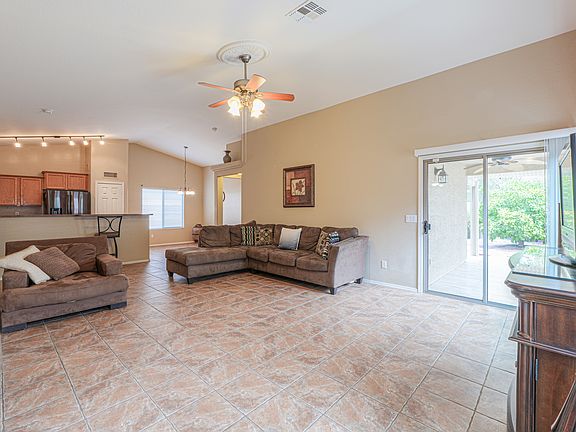 Welcome to this charming 3-bedroom, 2-bathroom gem in the sought-after Mission Valley community of Casa Grande! With tile flooring throughout, a bold accent wall in the living room, and a kitchen featuring warm oak cabinets and a breakfast bar, this home blends style and comfort effortlessly. The spacious primary suite offers a walk-in closet and sleek walk-in shower, while the beautifully landscaped backyard is an entertainer's dream, featuring a flagstone patio, lush greenery, decorative rock accents, a Southwest-style chiminea, and a pergola for shaded relaxation. Nestled in a vibrant neighborhood with parks, walking paths, an elementary school, and a basketball court just steps away, this home delivers the perfect mix of tranquility and convenience!
