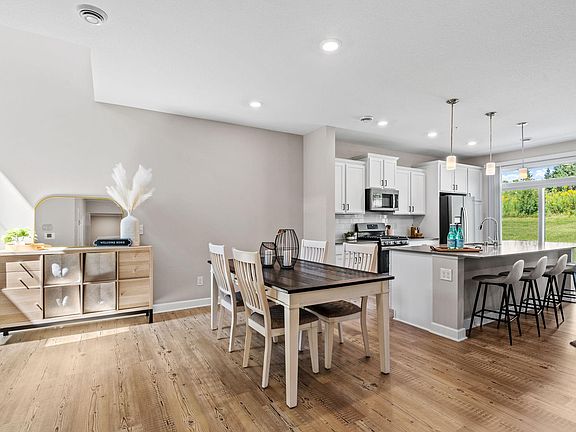 Beautiful two-story rowhouse-style townhome filled with natural light! The inviting 2-story foyer and 9 ft ceilings create a bright, open feel throughout. The main level features an open floor plan with large windows, a spacious living room with an electric fireplace, and a walk-out patio with backyard space. The stunning white kitchen boasts quartz countertops, slate appliances, a center island, and plenty of storage. Upstairs, you’ll find three bedrooms, two bathrooms, and a convenient laundry room. The primary suite offers a walk-in closet and a private ensuite with a large walk-in shower and double-sink vanity. Fantastic location close to parks, shopping, dining, and easy access to Highway 212!
