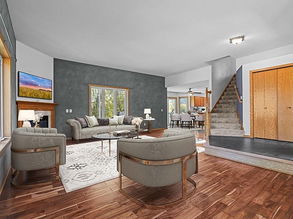 One year home warranty included! Outstanding opportunity to own a custom built 2-story on a fantastic .58 acre lot with an impressive lower level in-law suite! Features include a huge open concept main level with vaulted ceilings, gas fireplace and new LVP flooring. Bright and spacious kitchen with granite counters & large center island! The deck off of the kitchen/dining room has a great view of the large pond and your private yard! Main floor laundry/mud room/half bath! Upper level features three bedrooms including a spacious primary with full bath and walk in closet! The lower level is a great space that includes a 2nd full kitchen, full bath with additional walk-in shower, 4th bedroom, in-floor heat, large family room with den and walk out access to the back yard and pond - perfect for hockey or skating in the winter! Fresh carpet in lower level! additional entrance from the garage makes this a great in-law set up or guest suite! 3 car garage with lots of additional storage! Close to trails, restaurants, Centerville & Peltier lakes & 35E! Centennial Schools! Move in and enjoy your new home!