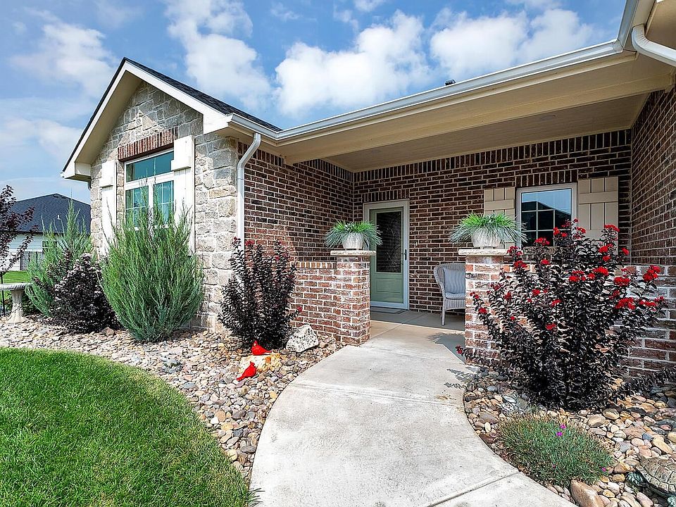 Better Than New!! Beautiful Custom Built Home in the Much Desired Eberly Trails Addition! This Home has Everything you need! Must see this Gorgeous Open Floor Plan with Tons of Light with all the Single Hung Windows w/ Custom Blinds! Too many upgrades to list them all! but I will try :) 5' Wrought Iron fenced in Back yard is perfect for a get together with the Covered Patio w/ Privacy Screen, She Shed and Backs up to a Mature Tree line plus a reserve lot next door for extra privacy :) Very Pretty Quartz countertops in the Kitchen, High End Appliances, HUGE walk- in Pantry, Tile Floors, Custom Cabinets & Lights! Master Suite includes a Walk in Tile Shower with built-in Bench, Dual Sinks, Tile Floors, Linen Closet and a Large Walk in closet that is also a Storm shelter! Laundry Room has a mini office, Double Doors, extra storage closet and a Window! Oversized 2 Car garage has room for storage and has an 18' insulated garage door with Windows for extra clearance & light! Curb Appeal includes Stone, Brick and Shutters, Perfect Landscaping, Mostly Enclosed Front Courtyard with a Special Order Glass Front door and a Storm Door! Driveway curb cut-out, Fenced in area for Trash cans And Fiber Optics! Must See!!