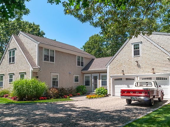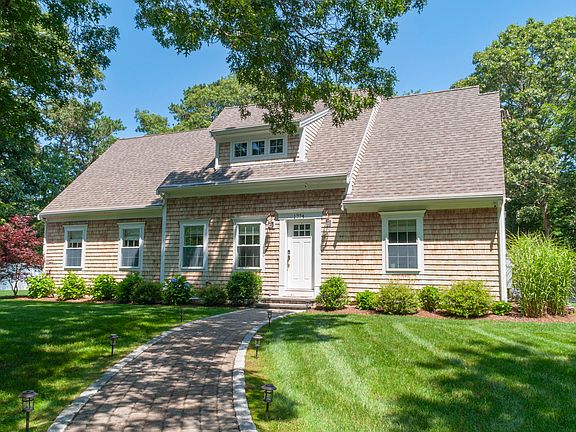 Experience the perfect blend of elegance and coastal charm at 1774 South County Rd. Just outside of downtown Osterville, this exceptional property is set back off the road and features three bedrooms and several spacious bonus rooms, on over an acre of land. As you approach the home, you'll be immediately captivated by the picturesque landscaping featuring meticulously crafted stone walls, an inviting patio, and vibrant flower beds. The exterior exudes a sense of tranquility that sets the tone for the entire property.The heart of the home lies on the first floor, where the seamless flow between the living room, kitchen, and dining area make it the hub for gatherings. The kitchen island counter is a masterpiece, showcasing a beautiful faux teak finish reminiscent of a boat's deck, lending a touch of nautical elegance to the space. Down the hall you will find a powder room, and a laundry room where the home's state of the art sound and alarm systems are housed. The first floor primary suite is designed to impress - with vaulted ceilings that create an airy ambience. A door from the luxurious en-suite bathroom leads directly to the back patio, where you'll follow a stone pathway to the delightful outdoor shower, perfect for refreshing after a day at the Dowses Beach. The second floor offers a perfect private haven for family or guests. Two well-appointed bedrooms are accompanied by a full bath to cater to their comfort. Between the bedrooms is a foyer or den area, providing a quiet work from home space or reading nook. Another extraordinary feature of this home is the spacious bonus room above the garage. Accessed by a private stairway and equipped with its own full bathroom, this space is excellent as a secluded workspace, entertainment room, or additional accommodations for guest overflow. The finished basement provides even more functional space, and the adjacent unfinished area is utilized as a home gym. This exterior of this home is designed with outdoor living in mind. Stone walkways lead from the outdoor shower to the vast patio, with a seemingly endless green lawn beyond, where there is ample room for a swimming pool. The centerpiece of this outdoor haven is the impeccably designed built-in kitchen, which raises the bar for al fresco dining and entertaining. Granite countertops and weathered barn board have been carefully curated to complete this space. Additional features that make this home move in-ready: attached two car garage, central AC, irrigation system, generator hookup, 7 zone audio system, and more. 1774 South County Rd is a must-see!