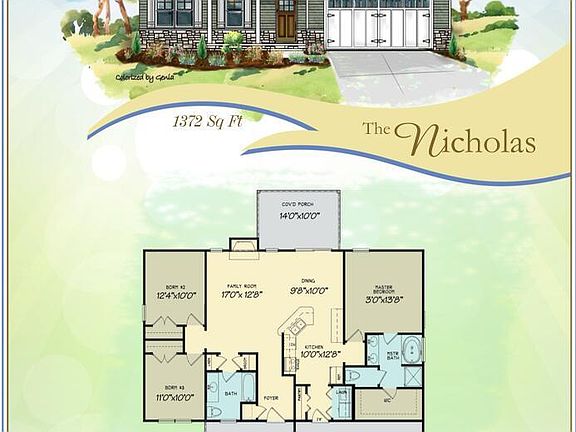 This beautiful 3-bedroom, 2-bath home offers 1,388 sq. ft. of thoughtfully designed living space. The modern kitchen features STONE countertops, a PANTRY, and a convenient BREAKFAST BAR that opens to the dining area and LARGE FAMILY ROOM, perfect for entertaining. The spacious owner's suite boasts a SOAKING TUB, walk-in shower, water closet, and a GENEROUS walk-in closet. Enjoy the comfort of a foyer entry, two coat closets, and a separate LAUNDRY ROOM for added convenience. Relax on the covered front and back porches, and take advantage of the two-car garage.