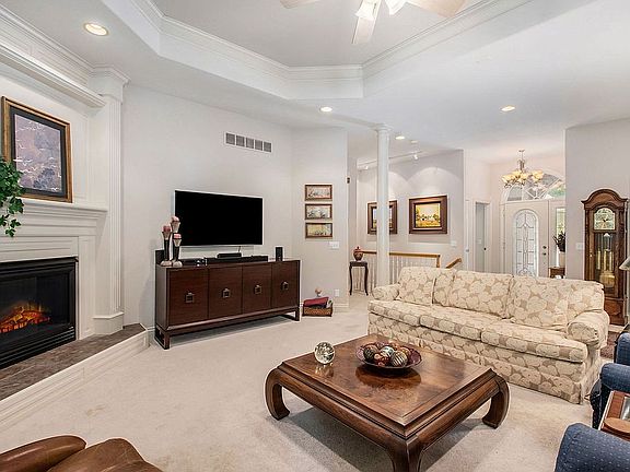 This beautiful ranch is on a quiet street, on a cul-de-sac, close to Hawthrone Villas. The main level has carpet, hardwood, and tile floors, tray ceiling, and features a fireplace and a security system. Also on the main level are 2 bedrooms, 2 full baths, and laundry. The kitchen features hardwood floors, quartz counters, a tiled backsplash, and a pantry. Appliances stay with the home. The main bedroom is located on the main level and features carpet floors, a tray ceiling, a separate sitting area and a walk-in closet. The attached master bath includes tile floors, solid surface counters, a jetted tub, and a one-piece shower. The finished lower level features a bedroom, full bath, workshop, and storage area. Outside you'll find a three seasons porch overlooking the yard with mature trees. Exterior features include a lawn irrigation system. Please call the homeowner to schedule a private showing.