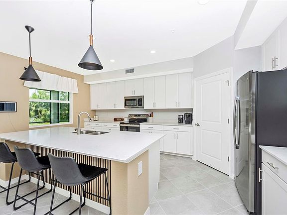 Be the first to live in this brand new 3 bed / 2 bath coach home located in a prestigious gated golf country club community in Wellen Park! This beautifully designed residence features an open floor plan with modern finishes, a spacious kitchen with quartz countertops and stainless steel appliances, and enormous breakfast bar. Enjoy the convenience of a 2-car garage, full size in-unit laundry, and a private screened-in lanai perfect for relaxing or entertaining. Primary suite has king bed and TV, large walk in closets and en suite bath with slider out to screened in porch. Second and Third bedrooms have queen beds with 2nd bath conveniently located outside of both. Large living and dining rooms with high end finishes and beautiful new furniture. Completely turnkey with everything you need to call this home. Community amenities include 18 hole golf. course, membership included, pickleball and tennis courts, bocci ball, clubhouse, dining, fitness center, spa, full time activities director, and resort-style pools. Available for monthly rental, perfect for seasonal or long-term stays. Close to several of Southwest Floridas amazing beaches, shoppings, tons of restaurants and nightly entertainment in downtown Wellen Park. Cool Today park is just down the street for Braves Spring Training. Lots of walking trails and ponds for fishing make this a great place for all of your entertainment needs. Call today to reserve your month!
