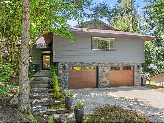 $10k towards closing costs or rate buy down! Unbeatable location and price in Lake Oswego with lake easement and Greentree pool access! Nestled in the highly sought-after Palisades neighborhood, this one of a kind home featuring four bedrooms, three baths, newer HVAC, floors, and an array of custom features throughout. With walls of windows, vaulted ceilings, and three fireplaces, this entertainers dream home is designed for comfort and modern living. Boasting two living rooms upstairs, both sure to impress. The formal spacious living room is bathed in natural light, a stone fireplace, skylights, and expansive windows, creating a bright and airy atmosphere. The second living room features a beautiful wood ceiling detail, stone fireplace, skylights, and two sliders leading to a covered outdoor space that wraps around to the dining area and yard. The stylish kitchen, equipped with newer quartz countertops and stainless steel appliances, is perfect for culinary creativity. The adjoining dining room, with sliders to the deck inviting natural light, offers an ideal setting for entertaining. A true oasis, the primary suite includes a spacious walk-in closet and a spa-like bath. Downstairs, you?ll find an additional family room, stone fireplace, new carpet, two bedrooms, a bathroom, and an infrared sauna, an ideal retreat for relaxation and rejuvenation. The flexible floor plan allows for endless possibilities. Featuring a rare, two-car garage with one tandem space, providing three parking spots in addition to the large driveway. The sun drenched backyard is a dream with a beautiful water feature and inviting yard. Situated on a large, private corner lot, close to shops, restaurants, the new aquatic center, nearby trails, and award-winning Lake Oswego schools highlight some of the many reasons this home is sure to impress. Do not miss out on this rare opportunity to experience the best of Lake Oswego living!