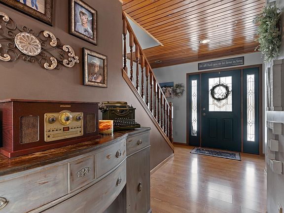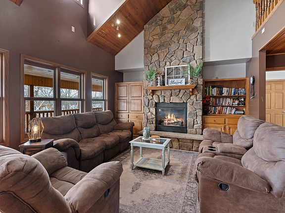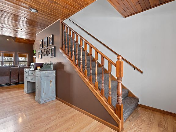 The streaming Apple River sets the stage for this exceptionally built custom home on 30 private acres. Timeless materials have gone into this 5 bedroom, 4 bath home including a large fieldstone fireplace in the main living room, vaulted ceilings, expansive primary main floor suite and a stunning porch to view the breathtaking natural setting. Designed to capture sweeping views from literally every room! The lower level features an additional kitchen area and large family room perfect for entertaining. This finely finished home also includes a large outbuilding, space for a shop and all your recreational vehicles. Trout fishing and great hunting in your back yard! Truly a must see property!