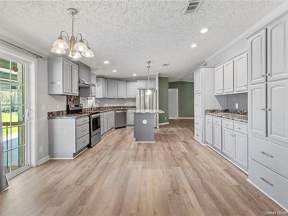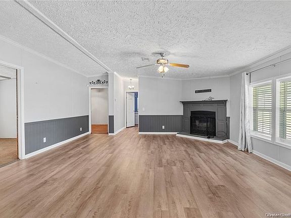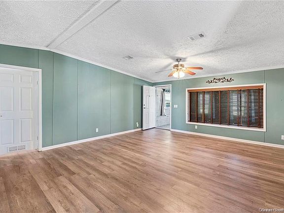 Discover the charm of LeBleu Settlement with this expansive 4-bedroom, 3-full bath Kabco mobile double wide manufactured home. This beautifully refreshed residence features a spacious split/open floor plan, a large kitchen with an island, and abundant cabinets boasting real wood doors and stainless-steel appliances. The kitchen seamlessly flows into the inviting living room, highlighted by a wood-burning fireplace, and a spacious den with an additional bonus room for your convenience. Indulge in the privacy of the master suite, complete with a sitting area and a large master bath offering a separate shower and tub. There are Three generously sized bedrooms as well. Entertain effortlessly on the 24x78 covered concrete slab, complemented by a deck and an additional 10 x 26 slab, perfect for gatherings of any size. A 14x30 shed adds extra storage options, all set on nearly an acre of picturesque land. Experience superior craftsmanship and modern elegance with the home's quality construction and stylish gray tones, making it move-in ready.