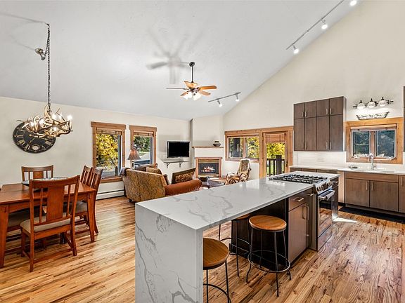Highly sought after Saddle Creek Townhome with fresh paint, new carpet, and a fully renovated kitchen. This 3-bedroom, 3-bath residence offers an ideal layout with two bedrooms on the ground level and the primary suite on the main floor. The open living area is highlighted by vaulted ceilings, a gas fireplace, and access to two spacious decks—perfect for taking in the quiet surroundings and direct views of the Steamboat Ski Area. The oversized two-car garage provides generous storage for all your mountain gear. Set in a peaceful residential neighborhood close to the Steamboat Ski Area, Saddle Creek offers the best of both worlds—tranquility and easy access to the slopes. The free city shuttle stops nearby, making it simple to get to skiing, restaurants, and downtown without the hassle of parking. With spacious interiors, abundant natural light, and a setting that’s close to the action yet tucked away, this townhome is the perfect mountain retreat.