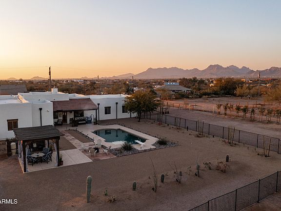 Beautiful views of the Superstition Mountains!! No power lines to obstruct the view of the entire mountain! These photos don't do this view justice. A must see for yourself! Immaculate, well-maintained home with new tile flooring and granite countertops in the kitchen, hallway, and guest bathroom with 10 ft ceilings and 12ft in the great room! New landscaping throughout. A/C unit is only one year old. Enjoy sitting in the great room with the view of the breathtaking Superstition Mountain right from the comfort of your couch and while you're eating dinner! Also, very visible in the kitchen and guest room. The backyard is an oasis with plenty of room for guests to enjoy the diving pool, firepit, pergola and cozy patio. The yard has an open canvas beyond the pool fencing with room to add a workshop, guest house and horse corrals, or any landscape of your choice. There is room on the side of the house and yard for your RV, boats and extra parking. This house is turnkey and move in ready. All on 1.25 acres. Just a few minutes away from downtown Apache Junction restaurants, Superstitions and Lost Dutchman State Park. Canyon Lake just 15 minutes away.