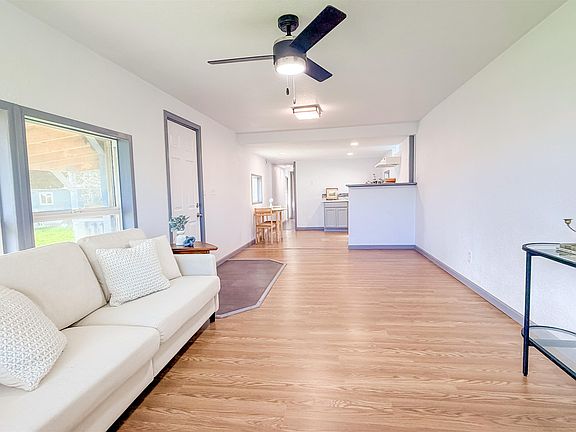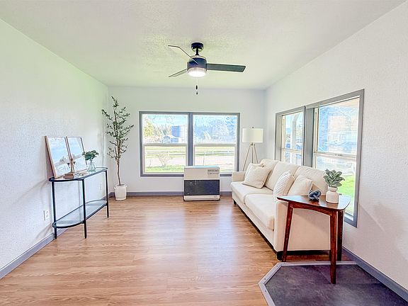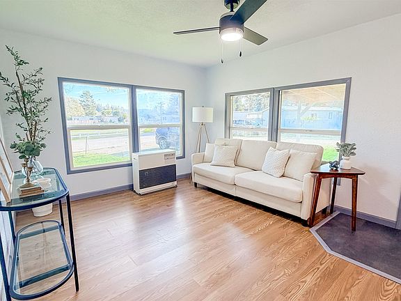 Freshly remodeled and move-in ready! This stylishly updated 2 bedroom, 1 bathroom single-wide home in Las Palmas Mobile Home Park is filled with natural light, modern finishes, and thoughtful upgrades inside and out. Step inside to an open-concept living area featuring new flooring, fresh paint, and kerosene heat for cozy living. The kitchen is both functional and charming, with butcher block countertops, a breakfast bar, and potential for open shelving to match your style. Down the hall are two bright bedrooms and an updated bathroom with a stacked washer and dryer. Sliding barn doors add style and help maximize space. Outside, enjoy a covered carport, large yard plus an additional awning that offers extra parking or outdoor lounging space. The lot is private and offers room to relax or garden. Space rent is $510/month and includes water and sewer. Park approval required. Major updates include new siding, new rubber membrane roof, fresh interior and exterior paint, new plumbing, skirting, flooring, and more—creating a crisp, clean feel throughout. Don’t miss your chance to own a fully renovated home in a quiet, welcoming park—schedule your showing today!