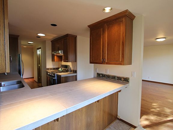 A gem on the westside of Bend. Beautiful floor to ceiling windows that look out to a wooded private backyard. This home has gas fireplace, new carpet, and workable kitchen. large wrap around back deck, single car garage with extra parking. Tenant pays all utilities