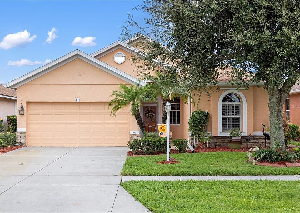 Beautifully maintained 3-bedroom, 2-bath home with a 2-car garage and over 1,700 sq. ft. of stylish living space. This light-filled home features an open-concept layout, upgraded finishes, and one of the best double-lake views in the community. Inside, tile floors run through the main living areas, with luxury vinyl plank in bedrooms. The modern kitchen includes solid wood cabinets, granite counters, a granite composite sink, breakfast bar, and full stainless appliance package including a natural gas stove, microwave, refrigerator, dishwasher, wine fridge, and pull-out drawers in the pantry and many of the cabinets for easy organization. Plantation shutters and designer lighting add an elegant touch throughout. The split-bedroom design ensures privacy, while the spacious primary suite features a tray ceiling, dual walk-in closets, and a private bath with granite dual vanity and a large walk-in shower. Step outside to an extended screened lanai with retractable awnings, and peaceful water views of two lakes. Practical upgrades include a tankless gas water heater, mini-split A/C in the garage, hurricane protection, and a newer roof. Community perks abound: heated saltwater resort-style pool and hot tub, tennis, basketball, and pickleball courts, fitness center, playground, billiard room, and library plus a full calendar of clubhouse activities. Lawn care is provided by the HOA, so you can relax and enjoy the view. Conveniently located near I-75, Wellen Park, the Braves stadium, golf, shopping, and Gulf Coast beaches.