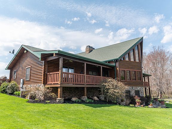 Welcome to this custom built & meticulously maintained 6,500SF LOG CABIN HOME features: Open Floor Plan, full log design, tonque/groove walls and ceilings, hand/machine-hewn beams, 3 natural gas wood-burning fireplaces with flagstone hearths, Craftmade cabinetry, 3/4" slate floors/countertops, natural glagstone floors and Stanton, Shaw and Mohawk carpet throughout (2014). KITCHEN: Cook/serve island with both JennAir oven and black cast iron cook top, grill/griddle with raised eating area, 3-compartment S/S sink and newer KitchenAid dishwasher. DINING ROOM: features see-through fireplace that opens to the GREAT ROOM: 23' high-beamed ceiling, scenic windowed view. MASTER BEDROOM with fireplace, glass garden doors, private deck and EN-SUITE BATH: Jetted spa tub, his/hers sinks, walk-in closet. Home features intimate LOFT BEDROOM SUITE: 2-person Jacuzzi, fireplace glass French doors, private deck and a full bath. WALK-OUT LEVEL fully equipped additional living suite features a rare sunken fireplace retreat as well as your personal gym/recreation room. ADDITIONAL FEATURES: 1st floor laundry, ramled entrance, 36" doorways, 17-1/2" toilet heights, furnaces (2015), dimensional shingles (2009), Arzel heating/cooling system, two 1,000-gallon septic tanks, 4-car garage, horse barns, electric-fenced pasture (2009).