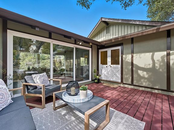 Highly sought-after Belmont Country Club, 4-bed, 3-bath residence blends timeless mid-century modern design with versatile living spaces & breathtaking hillside views in a tranquil setting. The main level opens with a formal entry to a stunning living room w/vaulted ceilings, a gas fireplace & expansive windows w/tons of natural light. Adjacent is the formal dining rm.The light and airy kitchen features a generous eat-in area,luxury vinyl flooring & an abundance of counter space & cabinetry. A stylish powder rm w/vintage wallpaper adds charm & the primary bath offers a stall shower, additional vanity, & 2nd sink. 1st Primary bedrm is upstairs on the main level w/plush carpeting, dual closets. The 2-car gar. has been partially converted into a rec. room with a flexible layout & extra storage. Staircase to lower level, where the spacious family rm becomes the heart of the home. Hardwood floors, wood burning fireplace, built-in cabinetry w/wet bar create an ideal space for relaxing. A secondary room w/expansive windows offers versatility as an office, gym or playroom. 3 additional bedrms, including a 2nd primary suite are on this level + a hall bath with a shower-over-tub near the laundry area. Outdoor living offers a large front deck & patio inviting gatherings under the open sky.