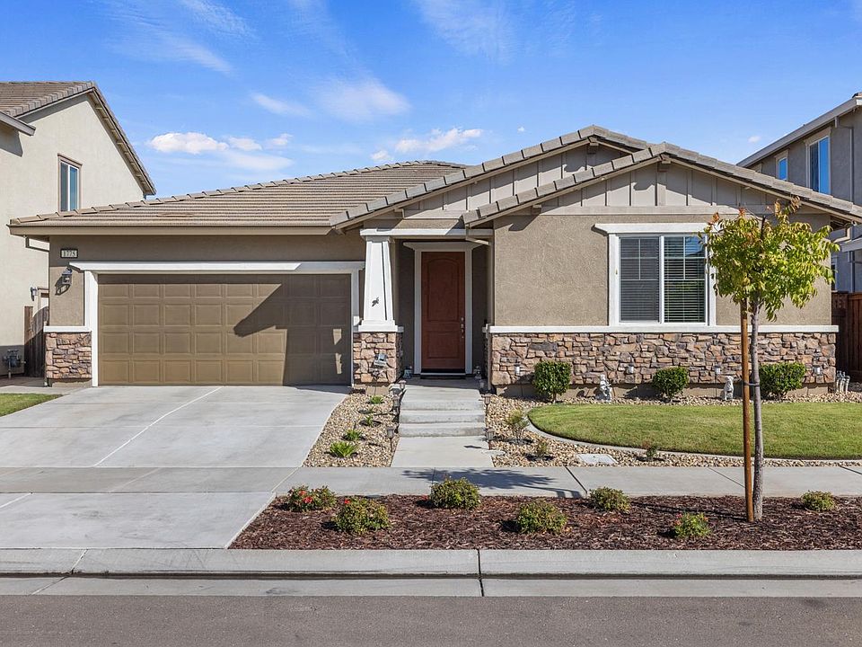 Turn-Key Model-Like Home in River Islands, Lathrop! Pride of ownership at its finest! This stunning single-family home in the highly sought-after River Islands community features 3 spacious bedrooms plus a den (possible 4th bedroom) and 2.5 bathrooms. Every inch of this home reflects thoughtful design, quality craftsmanship, and modern comfort. Upgrades include luxury vinyl tile flooring, elegant shutters, a 5-burner stove with upgraded stainless steel hood, a custom pantry door, and manicured low-maintenance yards with stamped concrete patio and a beautiful pergolaperfect for outdoor entertaining and relaxation. Additional highlights include a solar system, EV charger, and a fully conditioned garage featuring textured walls and sleek epoxy flooring. Move-in ready and styled to impress, this turn-key residence perfectly blends elegance, efficiency, and everyday comfort. This home awaits you!