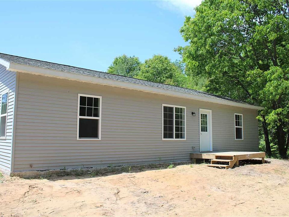 Newly built 3 bedroom, 2 bathroom ranch on 2.5 acres. Lovely open floor plan, with two bedrooms and a bathroom on the opposite side as the master suite. 95% efficiency furnace and very well insulated home. Minutes to Interlochen, parks, and many lakes for fishing and boating. The land backs up to an Inland township 40 acre park. Motivated Seller, bring all offers!