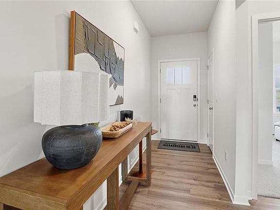 Welcome to Prairie Trace, where modern design meets timeless elegance in this exceptional home crafted by D.R. Horton, “America’s Builder.” This home stands out with James Hardie® siding and stone and shake shingle accents, providing both durability and timeless curb appeal. You'll be greeted with a three-rail, two-panel insulated front door that enhances both curb appeal and energy efficiency. Step inside to find a beautifully appointed interior with 9-foot ceilings that exude sophistication. The chef’s kitchen is the heart of the home, featuring 36-inch painted maple cabinets, quartz countertops, and state-of-the-art Whirlpool® stainless steel appliances. Bathrooms feature quartz-topped vanities and Moen® chrome faucets. The primary bath offers a 5-foot shower with a framed glass enclosure. This home is designed for the future with advanced Smart Home technology, including a Honeywell® Pro Z-Wave® Thermostat, Amazon Echo, and a connected home panel, allowing you to control and monitor your home from anywhere. Energy efficiency is prioritized with LED lighting throughout, a high-efficiency gas furnace, and insulated low E vinyl windows, ensuring comfort and savings year-round. Additional features such as luxury vinyl plank flooring, a spacious garage with opener(s), and detailed wiring solutions like dual data/TV lines in the main bedroom and family room, enhance both convenience and style. D.R. Horton’s commitment to quality is evident in every aspect of this home, offering you a place where luxury, technology, and comfort come together seamlessly. Don’t miss your chance to own this extraordinary home in Prairie Trace. Schedule your private tour today and experience the D.R. Horton difference!