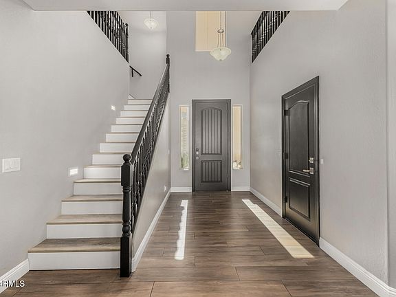 Majestic and gorgeous home in paradise,Main house has 5 bedrooms 2.5 baths, walk in closets, loft, wet bar, formal dining room, 2 - 2 car garages, balcony, fresh exterior paint, upgraded ceramic tile and LVP floors, sunscreens. Primary bedroom bath totally upgraded. The attached mother in-law suite has 1 bedroom and 1 bath separate private entrance and built-in surround sound and a putting green, private heated pool and spa with upgraded stack stone tiles, tankless water heater, water softener, SOLAR PANELS OWNED AND PAID FOR, electrical panel was upgraded to 400 watts. Kitchen upgraded. One garage HVAC cooling system. This home is stunning and waiting for you to make it your home!