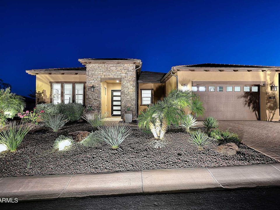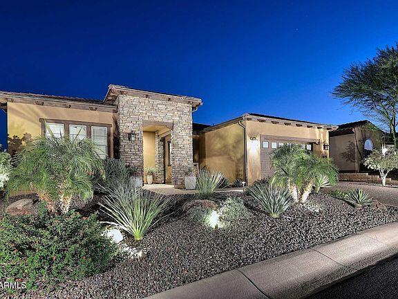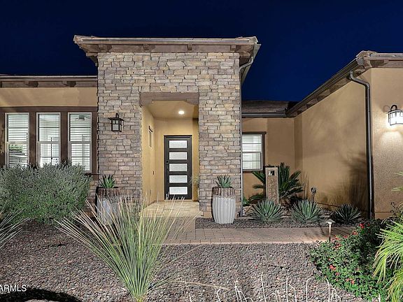 Welcome to your Oasis in Trilogy at Verde River. Experience luxury resort living in this spacious open floor plan that offers 2 bedrooms plus den. You will find many distinctive features such as custom built-ins in den, stunning stone wall with fireplace in great room, motorized roller shades, upgraded flooring throughout and an abundance of natural light. Gourmet kitchen with Monogram appliances. Sliding wall of glass opens to captivating pool with water falls, spa, raised seating area with fire pit, and built in BBQ. Your private sanctuary backs to open natural space where wildlife is often seen. The primary suite features custom barn door leading to the spa like bath and generous walk in closet. 4 bay extended garage, custom overhead storage, EV charging capability and so much more.