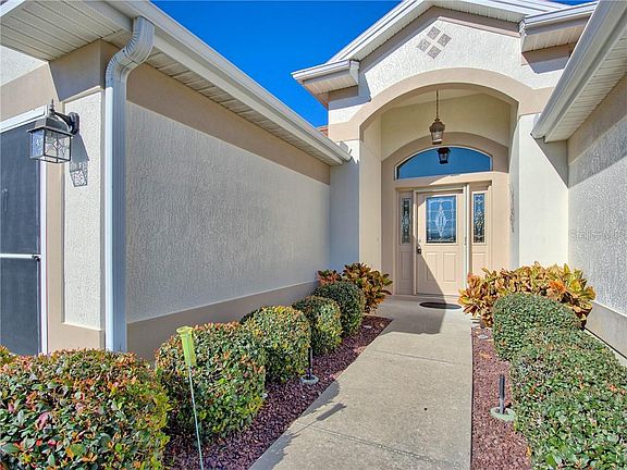 THE BOND IS PAID on this ONE OWNER, Block & Stucco LIVE OAK (LANTANA) DESIGNER in The VILLAGE OF SPRINGDALE. Conveniently located to medical, grocery, shops, restaurants and entertainment. A beautiful entry door complete with transom, sidelights and hide-a-way screen greets you. Upon entering, the foyer reveals an open floor plan, vaulted ceilings and lots of natural light! The kitchen features a GAS RANGE, side-by-side refrigerator, pantry closet, plantation shutters and Reverse Osmosis. Enjoy meals from the large casual dining space or the convenient breakfast bar! Sliding glass doors open from the living room to an enclosed lanai with acrylic windows. Master bedroom features a vaulted ceiling. Master Bathroom has a walk-in shower, water closet, dual sinks and huge closet. 2 SPACIOUS Guest Rooms and Guest Bath with tiled shower/tub combination are perfect for your visitors. TILE flooring in the entry/kitchen/bathrooms, and carpet in the living room/master bedroom/guest rooms. New Hot Water Heater 2020, New A/C 2017, Solar tubes, Water Softener, Lightning Rods, natural gas heat/hot water and cooking. Measurements and square footage are approximate therefore not guaranteed. Buyer to verify all room dimensions.