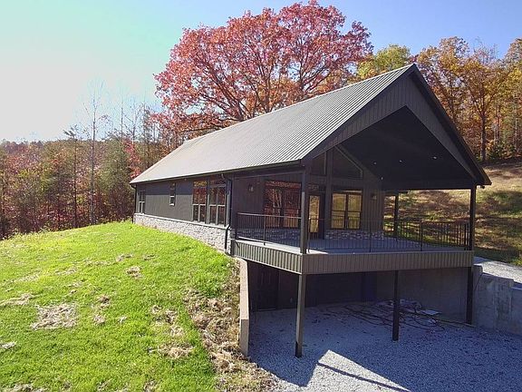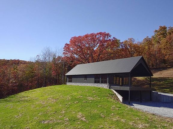 HOME - GET AWAY - LODGE all in one. Can be purchased as home & 77.4 acres m/l. (Tracts #5 & 6). Brand New Home with all the extras including granite, wood floors, cathedral ceiling and high ceilings, a true custom build. Home has open living room - dining - kitchen with the large living room having a 20 ft. tall wood cathedral ceiling, opening up onto a 16 x 26 concrete elevated porch, modern kitchen with all stainless appliances and ding area. Primary suite with large bedroom - spacious tile bath with granite - walk in tile shower - walk in closet w/ utility area, 2 additional bedrooms with tile hall bath, plus 2 car carport. Home has a full basement with metal clad finished walls. Ideal get away, mostly woods with great hunting and trails. Located 1775A Fisher Creek Road