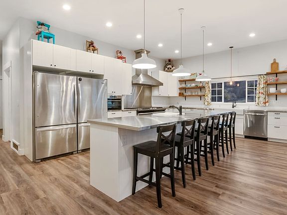 Large and spacious modern farmhouse situated on 2 acres at the base of the mountain with prime, unobstructed views. Custom designed with a large family in mind.