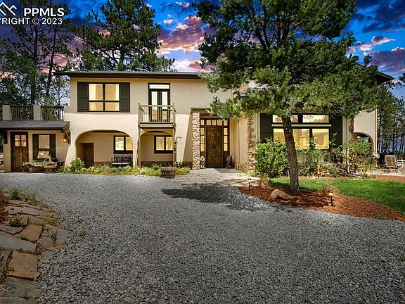 This 5-bed, 5 bath renovated beauty sits on an exquisite lot in a highly sought out area. European style living with antique cabinetry, stone/ tile/ hardwood floors, and great outdoor space! The exceptional 1.5-acre wooded lot is secluded with spectacular mountain and city views. Experience old world charm throughout the entire house. Located not far behind the Broadmoor Hotel with walking distances to Cheyenne Canyon. Features: -Exceptional stone masonry/flooring throughout the house. -Kitchen has beautiful countertops with antique styled cabinetry, bar space, and island. -Master Bed/Bath on second level with double vanity, tub, shower and walk in closet. -Main level bedroom with 3/4 bath that can be converted to additional kitchen space. -Open joined dining and living room space with old world wood burning fireplace for a warm and comfortable feeling. -All bedrooms have their own decks, closets, and bathrooms. Large Master Bedroom/bath. Additional Large bedrooms on second level. -Media room situated on second level. -Outside and Inside storage space. *Property has no garage but plenty of parking space. There is an attached area that can be easily converted to a 1 car garage. Room on property to build a 3-car garage in location of current shed or other space. * NO covenants or HOA!!