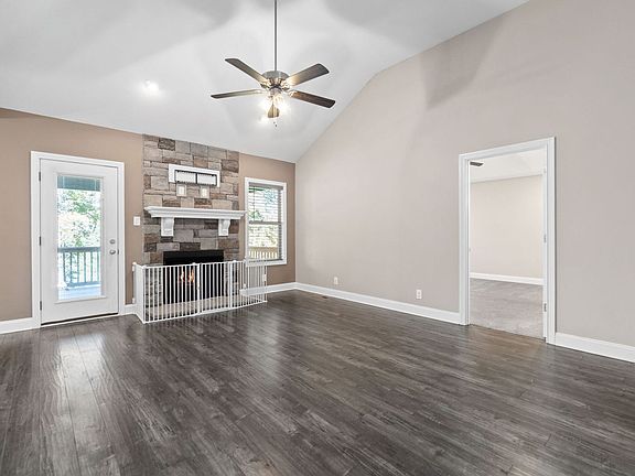 Welcome to this adorable ranch home featuring beautiful LVP floors and an open floor plan! The spacious living room with a stone fireplace creates a cozy and inviting atmosphere! The eat-in kitchen is a chef's delight, boasting granite countertops and stainless steel appliances! The large primary suite offers a luxurious escape with an impressive tiled shower and double vanity. Both guest rooms are generously sized!. Additional highlights include a two-car garage and a covered deck, perfect for outdoor entertaining. Pet Rent Scale - Dogs: $25.00 per month - Cats: $35.00 per month