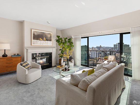 Check out this bright top-floor condo with dynamite southern views located in Nob Hill. The smart layout includes a spacious living/dining area with a fireplace and a balcony with sprawling city views. Whip up meals for your guests in the efficient kitchen with laundry closet and pantry. The bedrooms are off the hall to maximize privacy. A generous primary suite sports another view balcony and the en-suite bath features a walk-in shower. The second BR and bath is across the hall. Additional features include in-unit washer/dryer, storage and 1-car parking. Building amenities include a common roof deck and a beautiful spacious patio. Just down the block is vibrant Polk Street with Michelin-starred Acquerello, Swan Oyster Depot, Toast and others. Nearby essential stops include Brownies Hardware, Whole Foods, Trader Joe's and LiveFitGym, and for outdoor exercise, LaFayette Park is only 2 blocks away. This is easy city living!