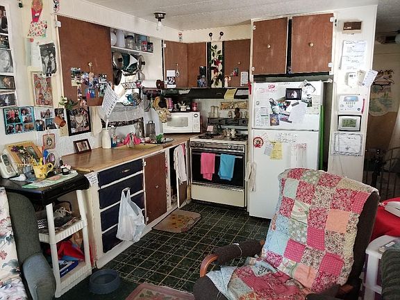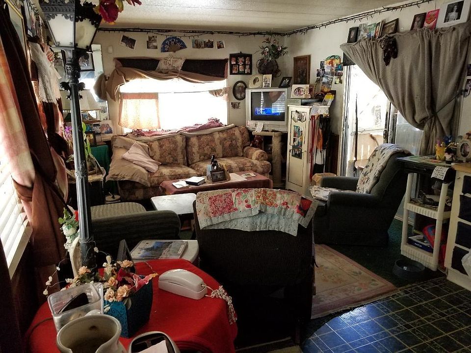 Single wide on front corner lot with nice large patio and yard with storage container.