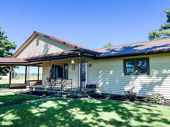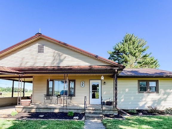 This charming ranch-style home situated on a peaceful 8-acre property offers the perfect blend of comfort and private country living. Unwind in the spacious living room, anchored by hardwood floors that flow throughout the home. The newly renovated kitchen boasts modern appeal with stainless steel appliances, wood cabinetry, and a stylish tile backsplash to make meal prep enjoyable. Many of the homes major systems and mechanicals have been replaced recently including: water heater, central air, well pump, water softener, and includes an encapsulated crawl space with spray foam foundation. Outside you will discover a true retreat for hobbyists and nature enthusiasts alike. An attached carport leads to a pole barn that provides a heated and secure space for your projects or vehicles, while two additional barns offer ample storage for equipment or livestock. The property comprises roughly 1 acre of yard and barn lot with approximately 4 acres of fenced pasture, ideal for horses, livestock, or for creating your own private green space. Explore the remaining 3 wooded acres, full of mature trees, wildlife, and a creek. This property is perfect for those seeking a peaceful escape with ample room for hobbies, animals, and outdoor enjoyment. **Home is connected to fiber internet**
