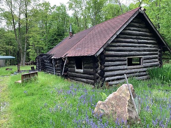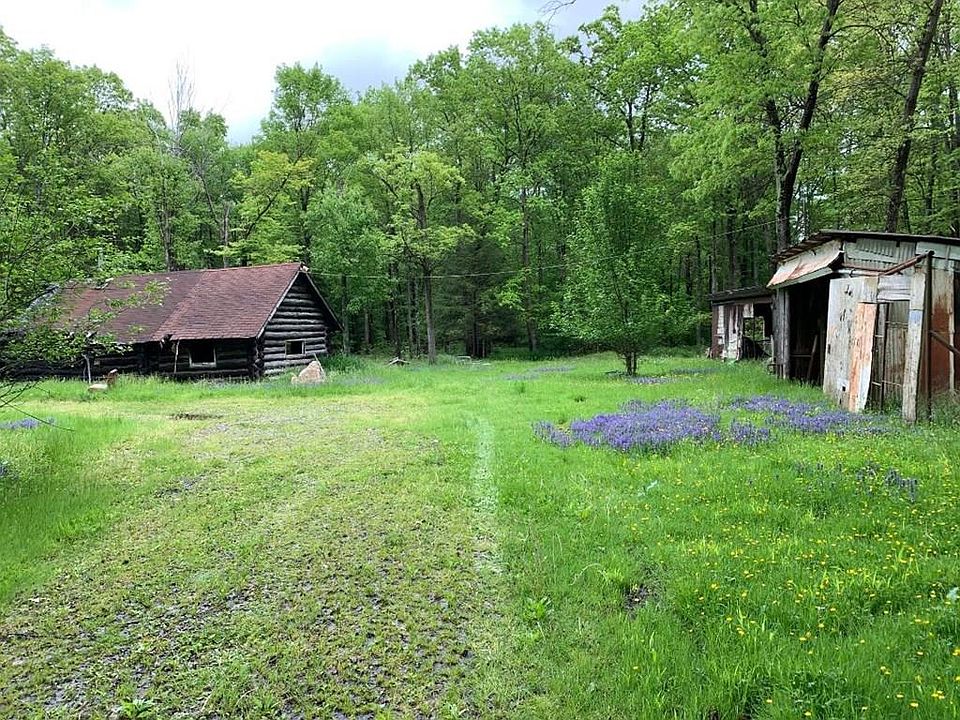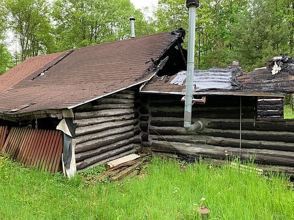Set back from the road, with a long driveway, you will find the ideal location for your new home and camp. With remnants of a burnt log home and two sheds, the property is being sold in "AS IS" condition. Very Private with wooded view. Excellent location for your new home. Seller knows very little about the septic system or well but they were operating before a fire took place on the property and it was abandoned.