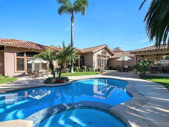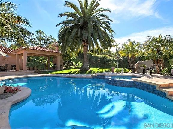 Stunning single-story home in Old Winery Estate. Perfectly poised on a beautiful resort-like acre lot with gated, custom home which exudes class, style and comfort. Some features include entire brand-new hardwood flooring, new granite bathroom counters, crown moldings, French doors, coffered ceilings, plantation shutters and picturesque windows which allow the beautiful California sunshine to pour in. Hardwood/tile flooring throughout the entire house. The floor plan presents an executive Mahogany wood paneled office, formal dining and living rooms and a stunning center island kitchen. Making gourmet meals will be so enjoyable with the double Dacor ovens, 6 burner gas Thermador cook top, Bosch dishwasher, built-in refrigerator, large walk-in pantry and custom wrought iron pot rack. The family room which is adjacent to the kitchen feels like a lodge retreat with its vaulted wood beamed ceilings, wall to floor stone fireplace and bar with glass cabinets and wine fridge. In addition, there is a separate custom wine closet with another wine fridge. Each bedroom suite has its own bath and closet while the master suite comes with a seating retreat, fireplace, lavish bathroom area and large walk-in closet. The serene outdoors offer a salt water pool and spa, plenty of grassy areas, two atriums, rose garden with fountain and a covered gazebo with built-in BBQ and fireplace. The landscaping is serviced by a big well. Walking to Bernardo Winery.