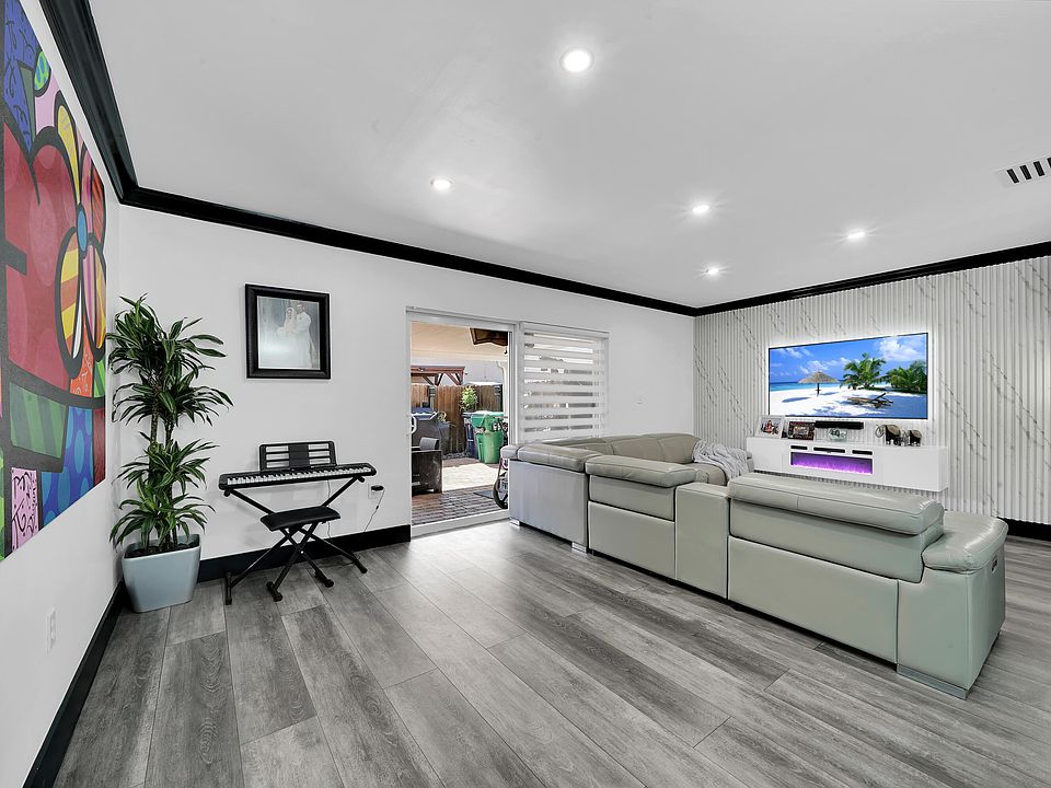 Welcome to 17762 Southwest 140th Court, Miami, FL 33177! This stunning home is a perfect blend of modern luxury and cozy comfort, offering unique features that truly set it apart. From the moment you walk in, you'll be captivated by the elegance and thoughtful design that defines every inch of this residence.The first floor has been beautifully renovated, showcasing elegant finishes that add a touch of sophistication to the space. One of the standout features is the wall-mounted fish tank, creating a serene and mesmerizing focal point that stays with the house. Below the TV, you'll find a sleek electric fireplace, perfect for adding warmth and ambiance to your living area, also included with the home. In addition, enjoy a brand new roof. The kitchen is a chef's dream, complete with a custom-made pantry that offers extra storage space, making organization a breeze. The impact windows not only provide security but also allow natural light to flood the rooms, creating a bright and inviting atmosphere.