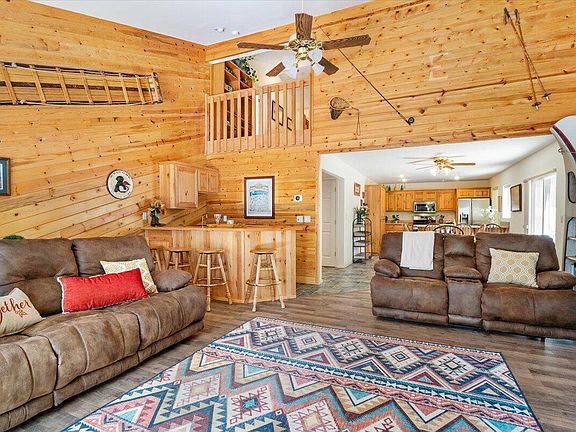 You won't be disappointed with this desirable Southend location and its close proximity to the Village, Sunriver Lodge & bike paths. Discover your slice of paradise in Sunriver, OR! This stunning custom-built cabin offers resort-style living with 4 bedrooms, including dual suites for ultimate privacy. Enjoy the charm of the floor-to-ceiling river rock fireplace and blue & buggy pine paneling in the great room, perfect for entertaining with a wet bar and overflow beverage refrigerator. For those with pets, the fully enclosed deck will sure be a hit. Relax on the wrap-around deck or in the hot tub that is located right off the main level primary suite. Updated kitchen with granite counters and stainless-steel appliances. Updated counters in bathrooms. Stay comfortable year-round with A/C. Complete with a 2-car garage. SHARC paid in full. Your dream retreat awaits!