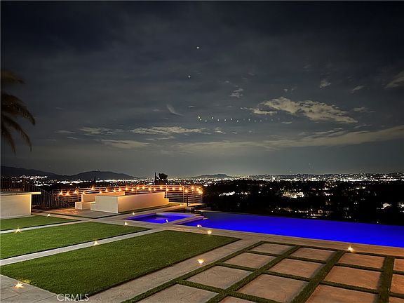 Masterpiece of Modern Luxury and Timeless Elegance! Step into a world of refined sophistication and breathtaking beauty at this exquisitely remodeled estate, perfectly situated to capture panoramic views of the San Fernando Valley and beyond. From the moment you enter through the custom front door, the grand entrance sets the tone for the luxury that awaits. The opulent living room greets you with custom stone flooring and a striking stone fireplace, offering a warm and elegant ambiance. Adjacent, the formal dining room seamlessly connects for effortless entertaining, making every gathering a special occasion. At the heart of the home lies a true chef's kitchen a culinary dream outfitted with top-of-the-line stainless steel appliances, double ovens, a built-in microwave, and quartz countertops with a waterfall edge. The oversized island is ideal for casual dining or hosting, while a walk-in pantry and window showcasing mountain and city light views complete the space. The spacious family room features soaring ceilings, recessed lighting, and a custom stone accent wall with a built-in fireplace. A sleek custom slider opens to your private backyard oasis, blurring the line between indoor and outdoor living. On the main level, a full bathroom with a custom shower adds both convenience and luxury. Ascend the custom wood staircase, accented by a stunning marble wall, to discover the primary suite a true sanctuary. Enjoy your own private balcony with sweeping, floor-to-ceiling views of the valley and city below. The spa-inspired en-suite bathroom has been fully reimagined with a soaking tub, luxurious stone finishes, and a serene atmosphere perfect for unwinding. The upper level also offers an expansive loft with uninterrupted panoramic views, ideal for a media space, home office, or additional lounge. A downstairs indoor laundry room and energy-efficient solar panels add practical comfort to the home's abundant style. Show-stopping backyard is an entertainer's dream. Dive into the custom infinity pool and spa, gather around the fire pit, or prepare a meal in the custom outdoor kitchen. Multiple sitting areas, additional fire features, and lush landscaping complete this ultimate resort-style retreat. This home is a private escape where luxury, design, and natural beauty converge. Experience the pinnacle of Southern California living in this one-of-a-kind estate that delivers elegance, comfort, and unmatched views in every direction.