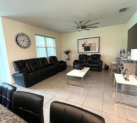 Gorgeous single-family house situated on the 10th tee box of the golf course. The exquisite kitchen displays a walk-in pantry, granite countertops, upgraded backsplash, and a full set of stainless steel appliances. Also, the Kitchen features a spacious Granite Island to share with your friends and family. The home features a covered lanai for outdoor dining, offering an amazing golf course view and providing an ideal space for entertaining. You will fall in love with the large, open Floor Plan, and with the Master suite quietly tucked away, where you will find a walk-in closet and an en-suite bathroom. Golf Course community! Short drive to Publix, Wal-Mart, and many restaurants. Call for your appointment!