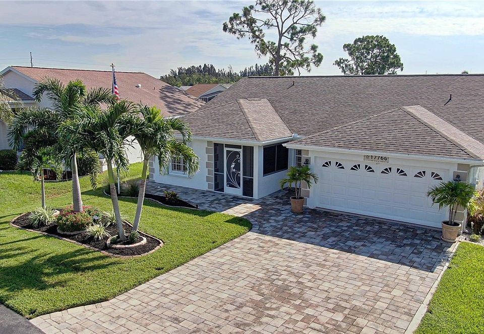 WATERFRONT & GOLF VIEW! This beautifully remodeled home in the 55+ gated community of Sabal Springs is a must-see! Featuring 2 oversized bedrooms, 2 updated bathrooms, and a flexible four-season room perfect for guests, hobbies, or a home office. Enjoy stunning views of the lake, wildlife, and golf course. UPGRADES & HIGHLIGHTS: Hurricane-tested: No damage during Hurricanes Ian or Milton. Tile floors throughout, laid on the diagonal. New hybrid heat pump water heater. Paver driveway, walkway, and patios around the home. No flooding in driveway during rainy season. Sunset-facing front, keeping the back lanai cool in the evenings. Incredible wildlife views eagles, osprey, herons, ducks, turtles, and more. Golf course view without golf cart traffic or intrusion. INTERIOR FEATURES: New kitchen with dovetail solid wood drawers, granite countertops, and new cabinets. Two remodeled baths with dual granite counter tops. New hurricane-rated sliders on lanai. New refrigerator, washer, and dryer. New side garage door and plantation shutters throughout. Hot tub (110V) included and ready to enjoy. EXTERIOR/COMMUNITY: 2015: Full re-pipe, new double front doors. Drought-tolerant landscaping. Low HOA fees include: exterior house painting every 7 years, irrigation, mowing, fertilizer, cable & high-speed fiber internet, 24 hour manned gatehouse. No CDD and no flood insurance required. Discounted golf memberships with no increases in the last 7 years. Upcoming upgrades: New tennis/pickle-ball courts and resurfaced pool deck by July 2025. On-site restaurant with live entertainment. Close quickly and move right in to this home!
