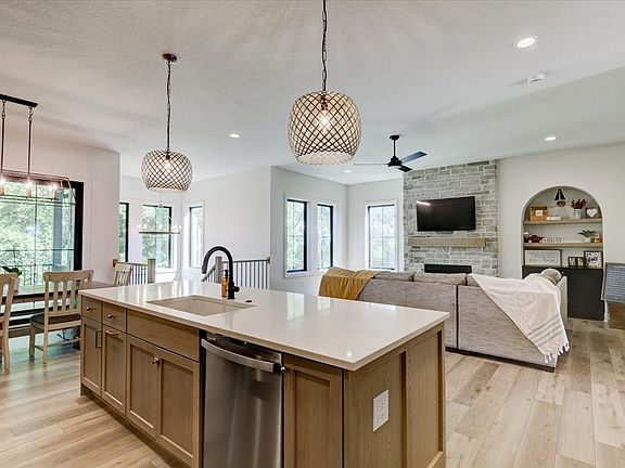 Welcome to your dream home! Black Birch Homes presents a perfect blend of elegance and comfort. Located in the prestigious Shadow Creek neighborhood, this sprawling 4-bedroom, 5-bathroom ranch provides over 3,700 finished square feet of sophisticated living space. The open floor plan leads you to the heart of the home, a stunning living room with a cozy fireplace and access to a covered deck, where you'll enjoy tranquil views of trees and a peaceful pond. The chef's kitchen features high-end finishes, large walk in pantry with custom shelving, perfect for entertaining or quiet family meals. The primary suite is a true retreat, offering a spacious walk-through bathroom with heated floors for added luxury. Main level home office with 11' ceilings complete with a full bath. On the lower walkout level, you'll find a second living room with a fireplace, a sleek wet bar complete with a beverage fridge, a home gym, and two generously sized bedrooms with two additional bathrooms, ideal for guests or family. Dual-zone heating and cooling for year-round comfort and thoughtful design elements, this home has it all. Make this extraordinary residence yours and experience the best of luxury living in Shadow Creek.