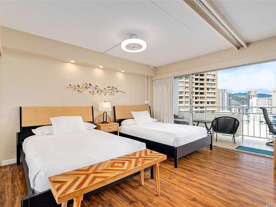 one-minute walk to the beach. The location is unbeatable at the entrance of Waikiki, close to well-known restaurants, Ala Moana Center, International Marketplace, and the Hawaii Convention Center.